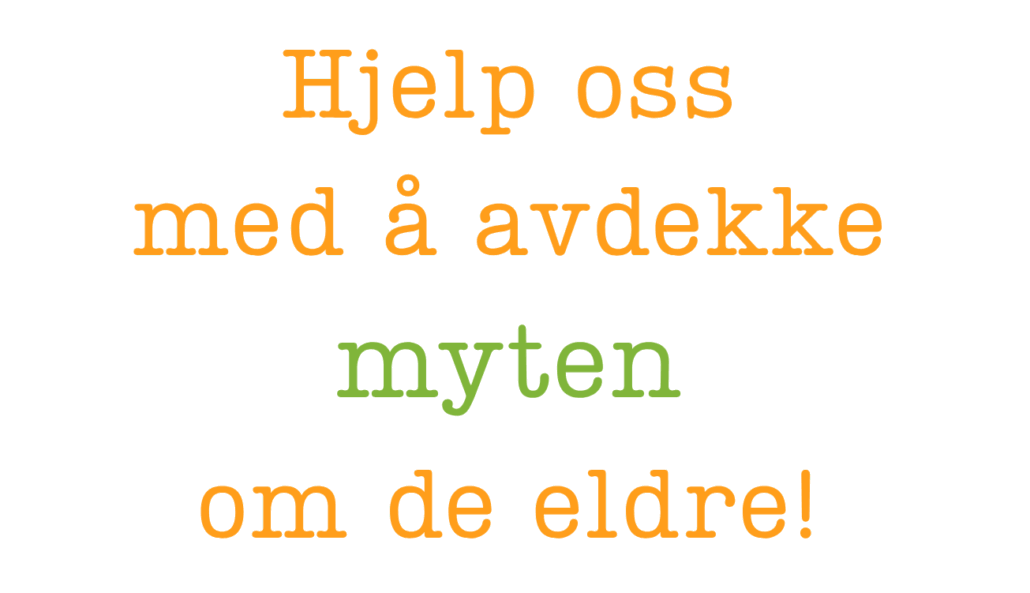 Med «Myten om de eldre» ønsker vi å undersøke hvilke oppfatninger og myter det finnes om eldre. Hvem er de eldre? Hva innebærer det å bli, og være, eldre? Vi samler inn myter fra et bredt spekter av befolkningen.